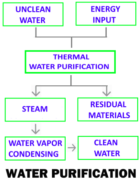 or cleaning of the water like water filtration, ion exchange, UV, Thermal or Solar Energy